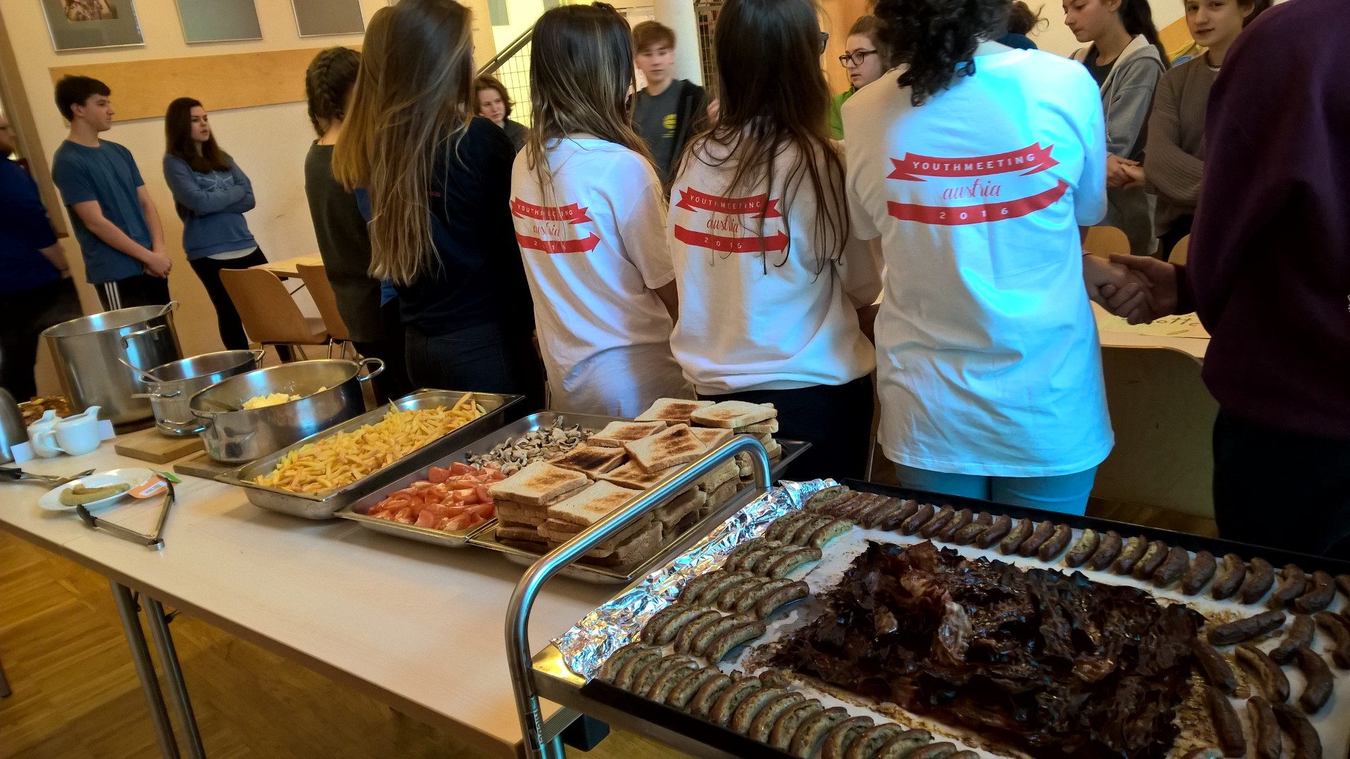 8 Tage kochen für rund 40 Personen - nein, ich erzähle nicht darüber, wie viele Kilogramm "Material" man dabei bewegt. Ich mag davon erzählen, wie sich einander völlig fremde Participants, einige davon mit ganz schönen Berührungsängsten, näher gekommen sind. In CISV ist es üblich, dass beim Essen die Gruppe bewusst "durchgemischt" wird: jeder Teilnehmende zeichnet sich ein Tischset, vor jedem Essen werden die bunt durcheinandergewürfelt auf die Plätze verteilt, und dann muss man dort sitzen, wo das "Schicksal" einen hingesetzt hat. Das bedeutet beim allerersten Abendessen viel Ruhe, vereinzelt gibt's ein paar Mutige, die dann auch das Tischgespräch dominieren, an anderen Stellen bemühen sich engagierte Leader, die Jugendlichen zur Konversation zu motivieren. Erfahrene CISVer reißen typische Rituale an, denen die Hälfte der Anwesenden mit großen Augen folgt. Manchen sieht man die Erleichterung an, als sie wieder in ihre Delegation "zurück dürfen". Die Veränderung ist von da an von Mahlzeit zu Mahlzeit hin spürbar. Wo am ersten Abend die Delegationen noch "nationenrein" in den Speisesaal kommen, gibt's immer gemischtere Gruppen und Grüppchen. Die Gespräche werden lebhafter, die Rituale werden lauter und intensiver, "Insider" schleichen sich ein. Das Camp wächst zusammen. Und dann kümmert sich der Däne um die weinende Französin, der Mexikaner lacht zu den Scherzen einer Österreicherin, die Spanierin trägt das Häferl für die Amerikanerin mit der verletzten Hand. Die letzte Mahlzeit pendelt zwischen lebhafter und gedrückter Stimmung. Die Jugendlichen genießen die letzten Momente und wissen gleichzeitig, bald ist es vorbei. Und die Küchenfrau zerdrückt eine Träne :-)